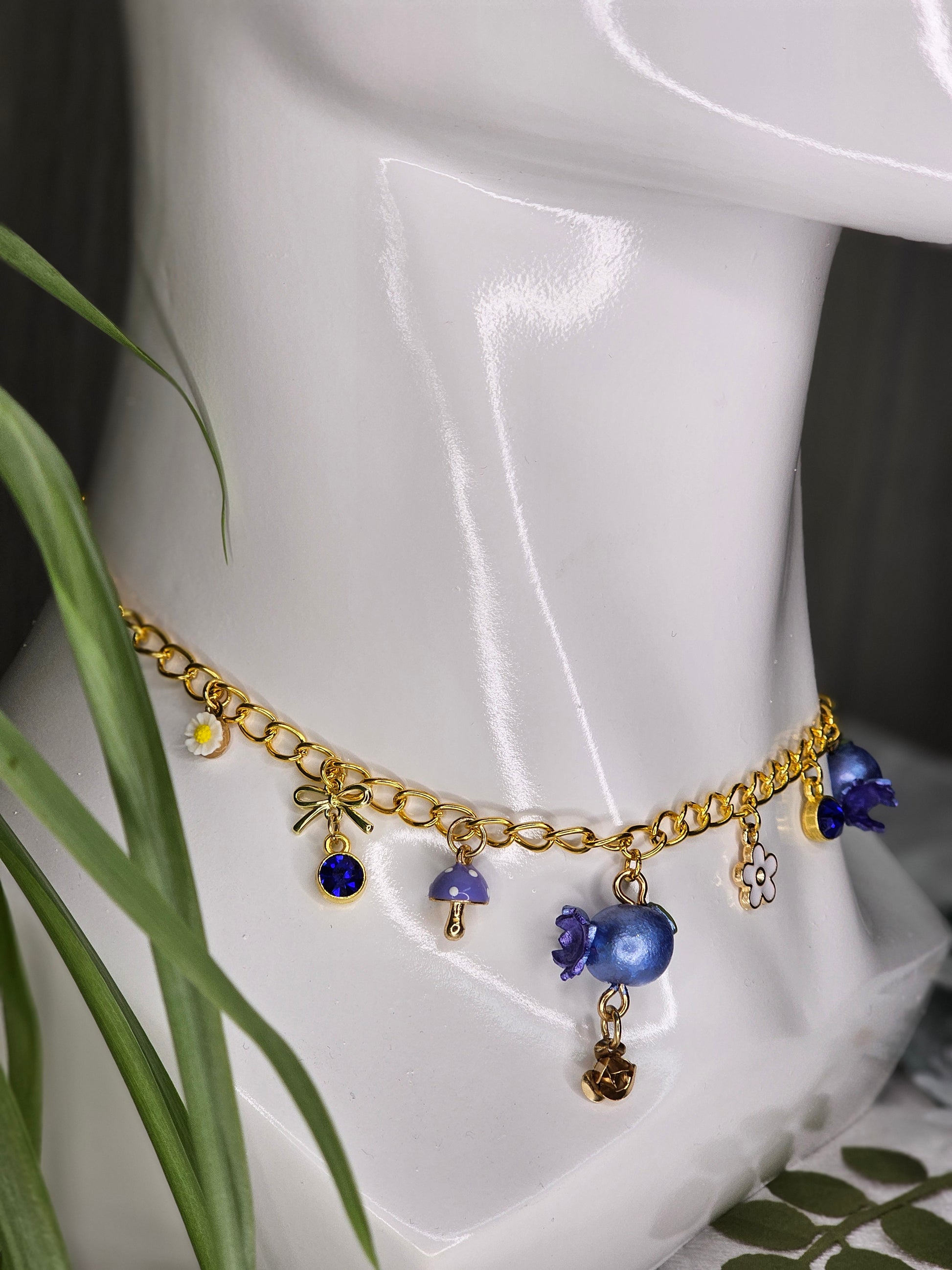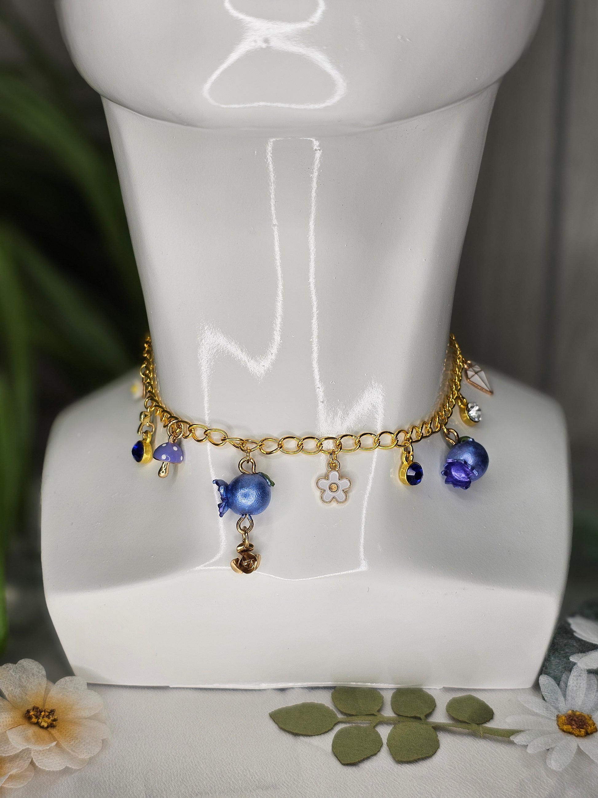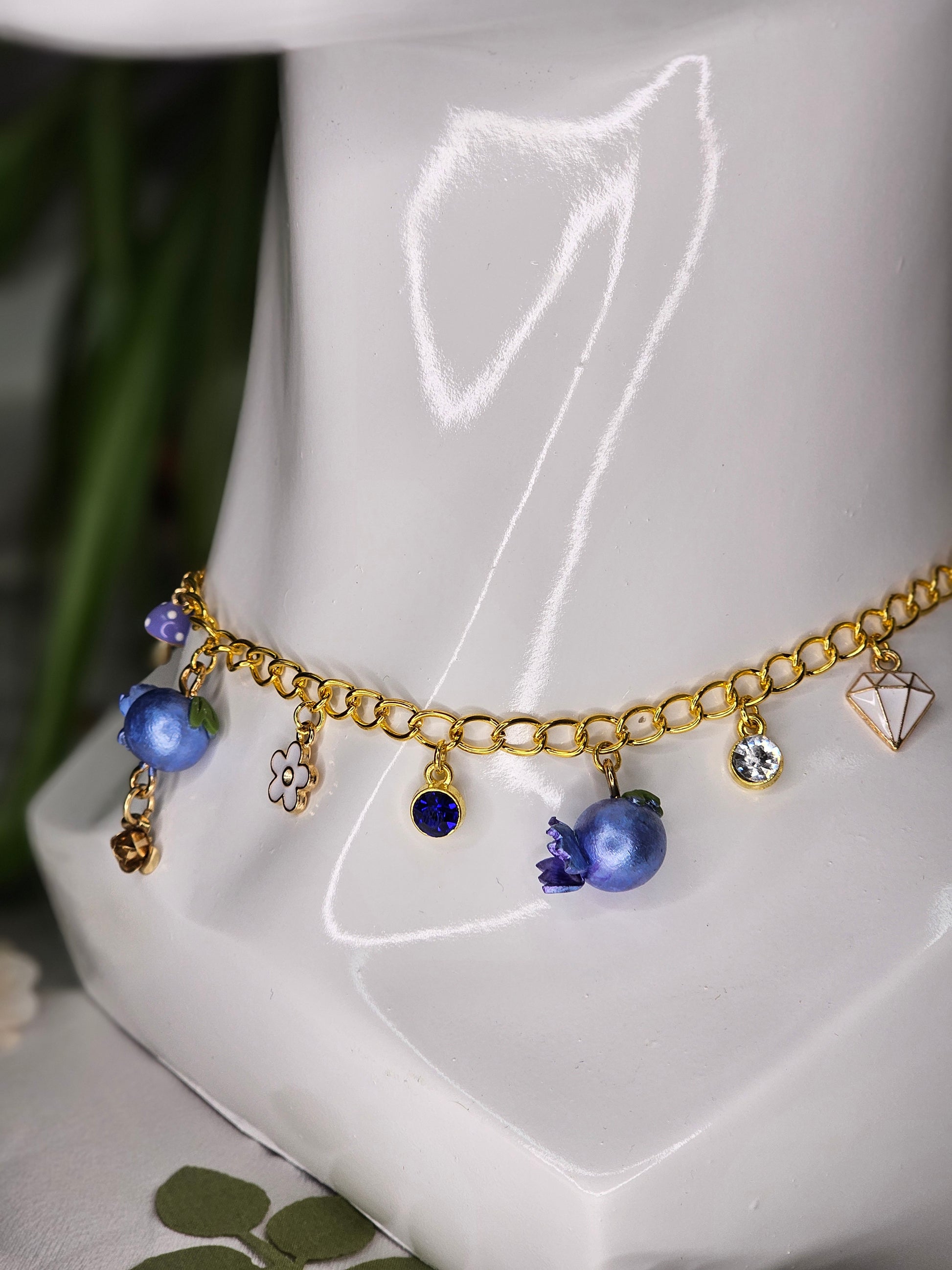 Wear your blues proudly with our "I Got The Blues" Charm Necklace! With handmade blueberry charms and beautiful sapphire accessory charms, this silver chain is sure to add a special flare to any ensemble.